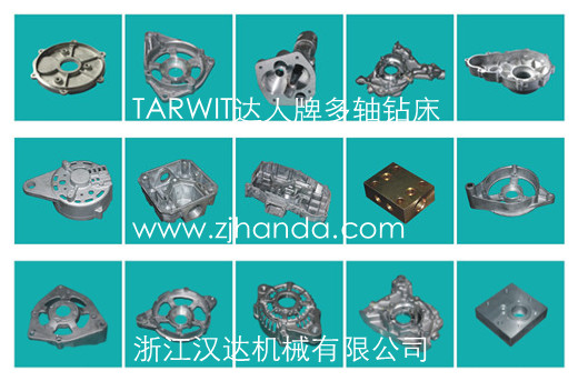 該產品可廣泛應用于機械行業多孔零部件的鉆孔及攻絲加工,如汽車、摩托車多孔零部件、發動機箱體、鋁鑄件殼體、制動鼓、剎車盤、轉向器、輪轂、差速殼、軸頭、半軸等,泵類、閥類、液壓元件、太陽能配件等等。比如以下工件: